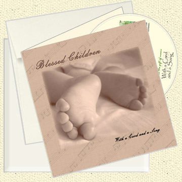 A CD of an original song inside a beautifully crafted 6x6 inch note card with matching envelope and paperboard mailer. The song lyrics are printed on the back of each card using recycled paper and green earth technology.