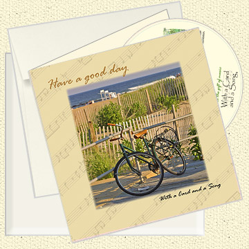 Each Gift Includes... A CD of an original song inside a beautifully crafted 6x6 inch note card with matching envelope and paperboard mailer. The song lyrics are printed on the back of each card using recycled paper and green earth technology. Price $7.95 plus shipping