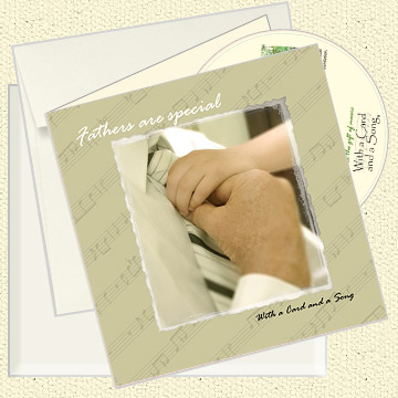 A CD of an original song inside a beautifully crafted 6x6 inch note card with matching envelope and paperboard mailer. The song lyrics are printed on the back of each card using recycled paper and green earth technology.